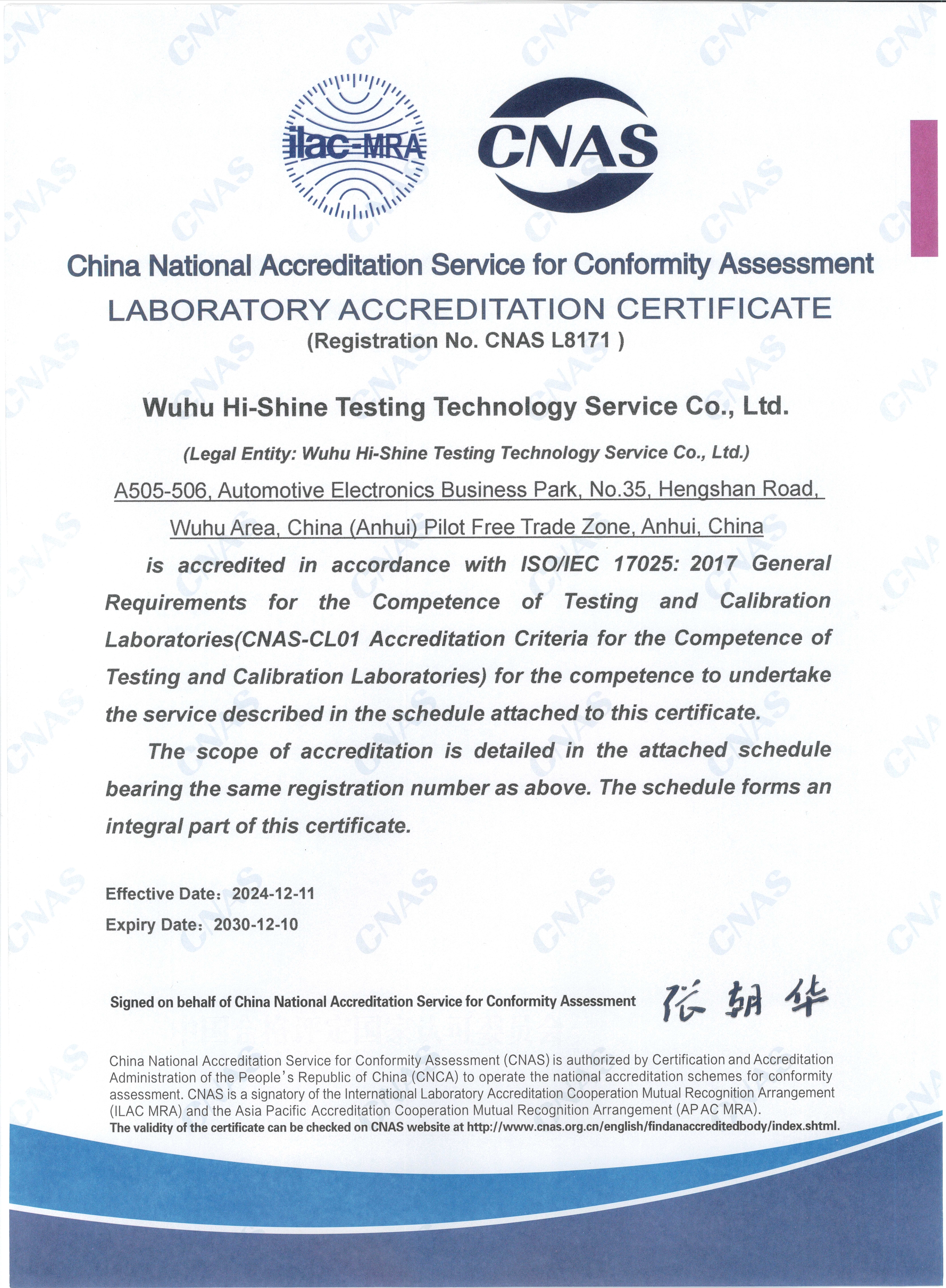 蕪湖衡信于2015年11月通過了中國合格評定國家認(rèn)可委員會(CNAS)的校準(zhǔn)和檢測實(shí)驗(yàn)室認(rèn)可(證書號:CNAS L8171),現(xiàn)有CNAS認(rèn)可校準(zhǔn)能力220項,可在幾何量、熱學(xué)、力學(xué)、電學(xué)、化學(xué)等多個領(lǐng)域?yàn)閺V大企事業(yè)單位提供第三方計量校準(zhǔn)技術(shù)服務(wù)。